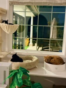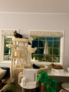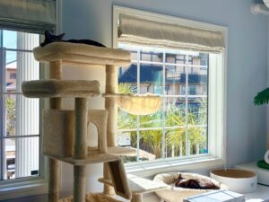 ニャンコ社員達お気に入りの窓辺にキャットタワーを置いてあげました。