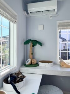 実はこの窓辺エアコンの風が当たり日当たりも良いので1番暖かい場所です